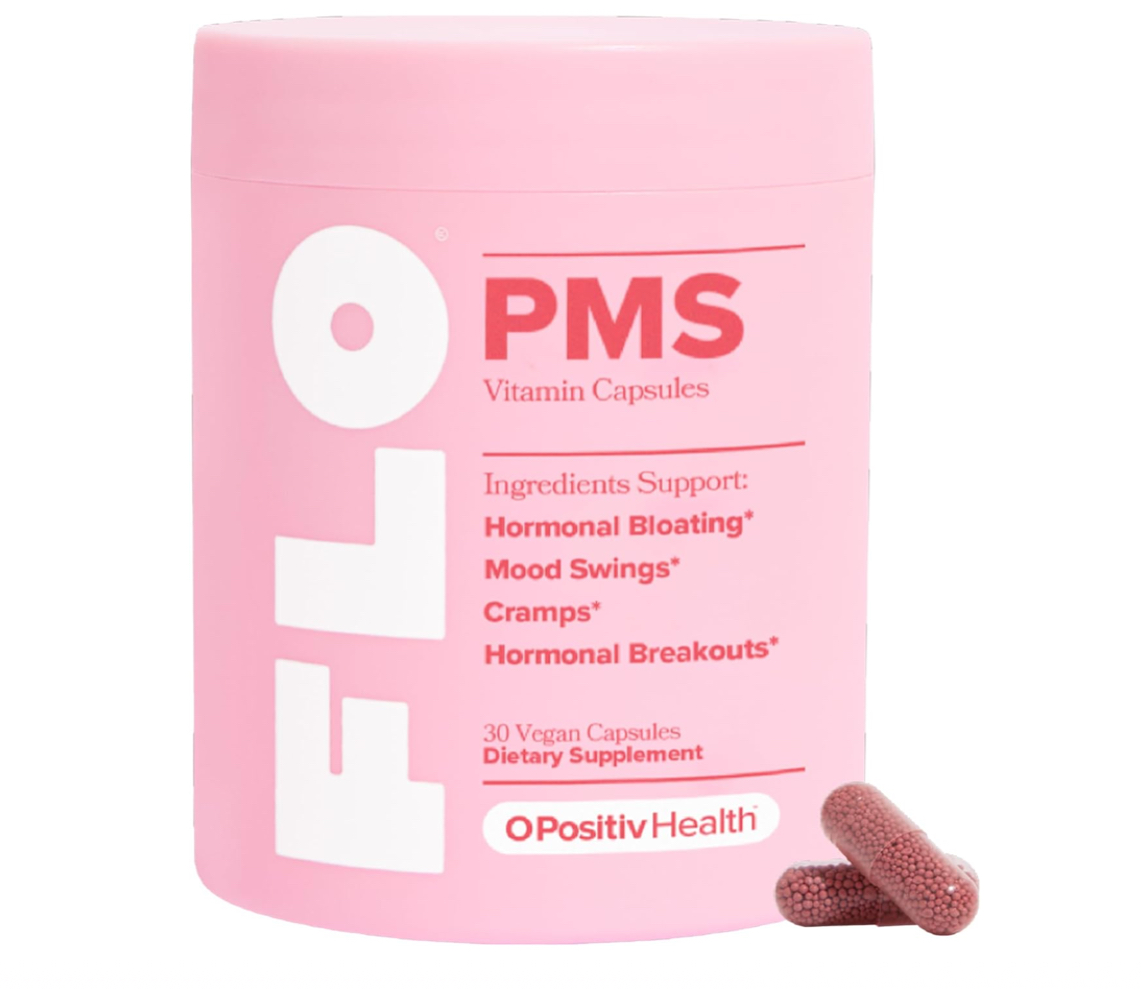 La primera vitamina del síndrome premenstrual: FLO PMS Relief es una vitamina diaria a base de plantas para ayudar con los síntomas comunes del síndrome premenstrual como brotes hormonales, hinchazón, cambios de humor y calambres